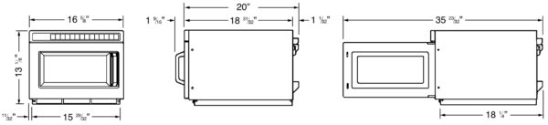 MICROWAVE OVENS | NE-1054F 1000W, 20 1⁄8"w x 16 9⁄16"d x 12"h, NE-21521 2100W, 16 5⁄8"w x 20"d x 13 3⁄16"h |