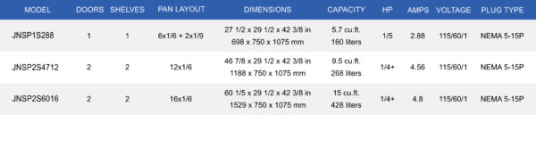 Units | JNSP1S288 1 Section, 27"w x 29"d x 42"h $1775.00, JNSP2S4712 2 Sections, 47"w x 29"d x 42"h $2295.00, JNSP2S6016 2 Sections, 60"w x 29"d x 42"h $2975.00 |