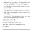 • Limited 3 year motor and 2 year parts and labor warranty
